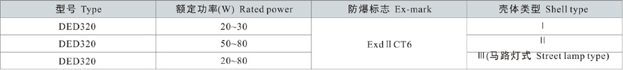 Note: 1. Select according to the product model description, pay attention to marking out the ex-mark; e.g.: Need product of 40W, 220V, pendant type, with junction box,gas explosion-proof, then the model should beDED320-40gH ExdIICT6 Gb;